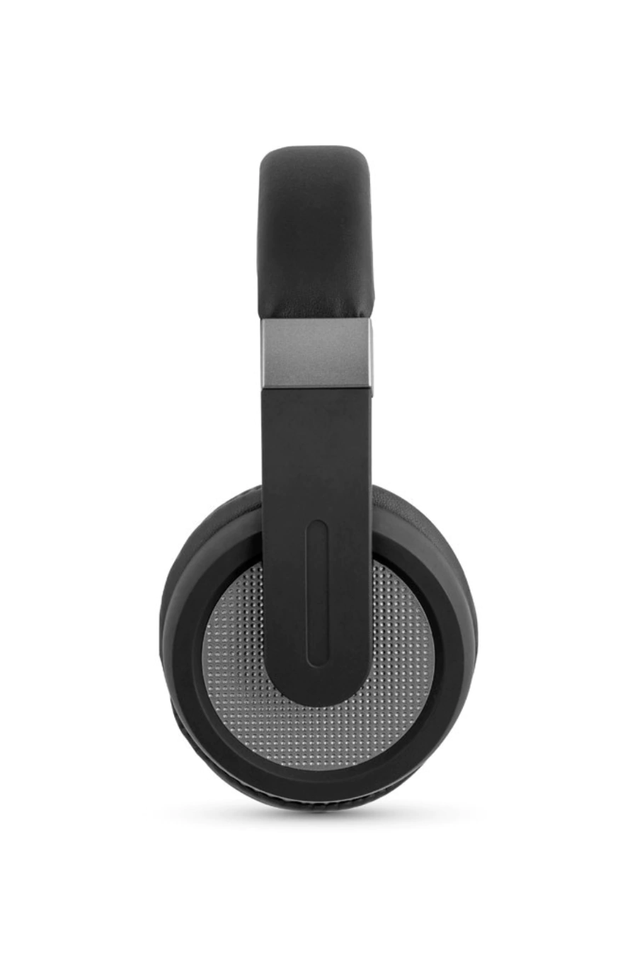 Fone de ouvido em PU e ABS com microfone, transmissão sem fios BT v5.0 e potência de 30 mW. A bateria tem uma capacidade de 300 mAh e autonomia aproximada de 12 horas. Produto com cabo de carregamento micro USB incluso. Fornecido em caixa de presente.