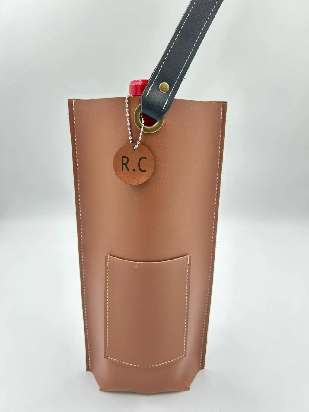 Feita em couro ecológico de qualidade, essa etiqueta é perfeita para personalizar seu porta garrafa.